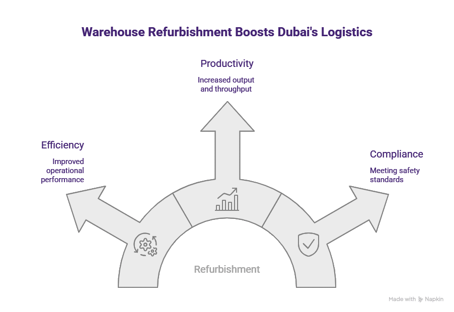 In Dubai, warehouse renovation is essential for maintaining the efficiency and safety of your storage space. It not only enhances the overall aesthetics but also ensures compliance with regulations.